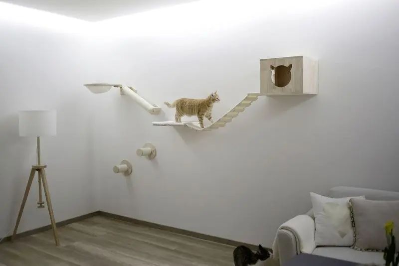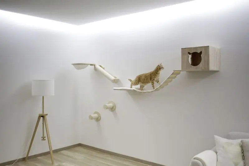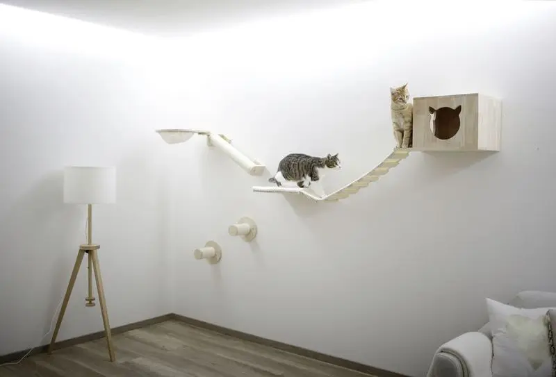 Anden heter denna nya klättervägg som passar katter i alla åldrar, som gillar att klättra och helst sover lite högre upp. Klätterväggar och höga klösträd ökar kattens utrymme och revir i hemmet, samt ger katten en privat sovplats dit t ex hundar och små barn inte når.