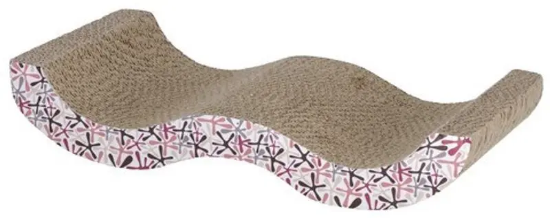 Kommer i snygg vågliknande design. Klösbrädan är tillverkad av återvunnen wellpapp som katter gillar att klösa och riva på. Wellpapp är även värmande, vilket gör klösbrädan till en perfekt plats för katten eller kattungen att vila på.