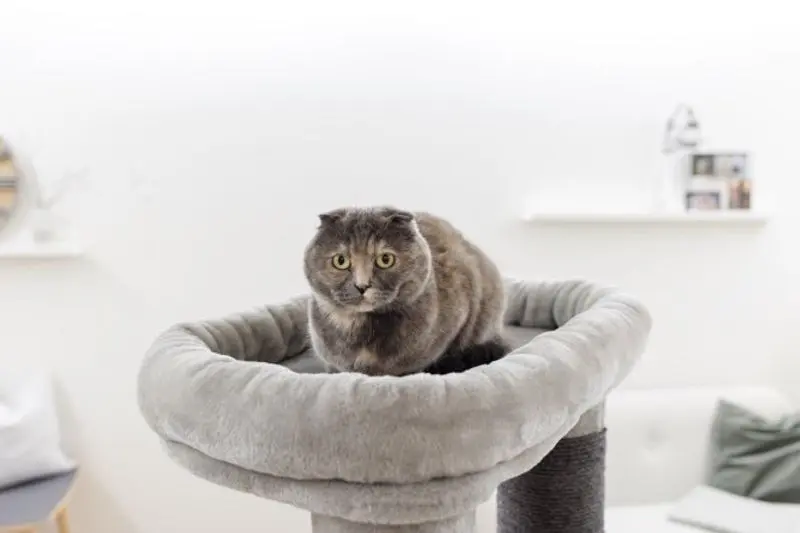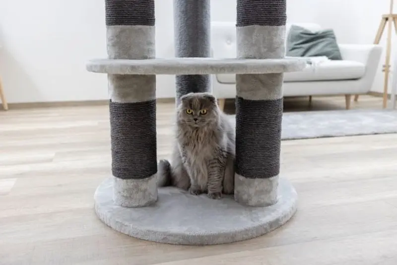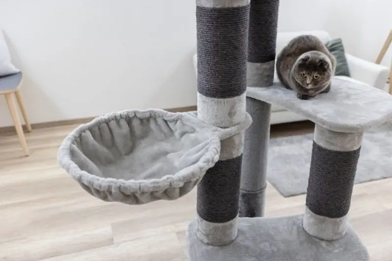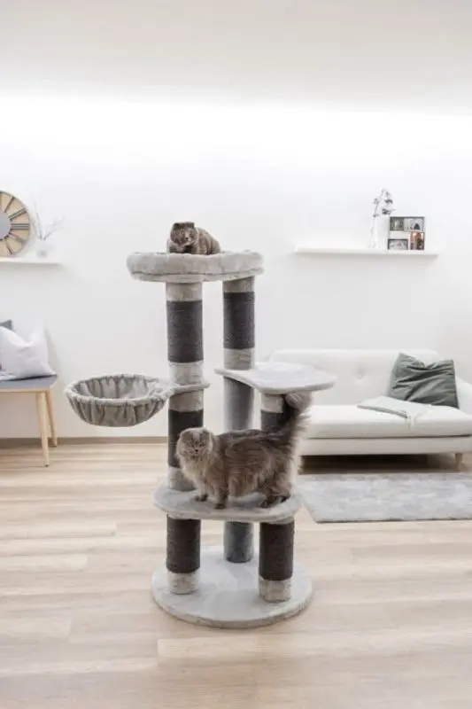 De 2 stora hyllplanen gör det lätt för katten att förflytta sig längre upp i klösmöbeln och längst upp finns en stor och bred kattbädd med mjuk kant. Denna bädd i toppen av klösträdet brukar vara en populär plats för att ta en tupplur och en bra spaningsplats ut över reviret / kattens hem.