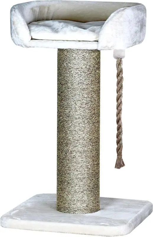 Detta stilrena klösträd i färgen ivory kombinerar funktion och komfort i ett kompakt format. Den mjuka plyschsovplatsen högst upp erbjuder en trygg utsiktsplats över kattens revir (ert hem), medan det nedhängande lekrepet ger möjlighet till bus och aktivering.