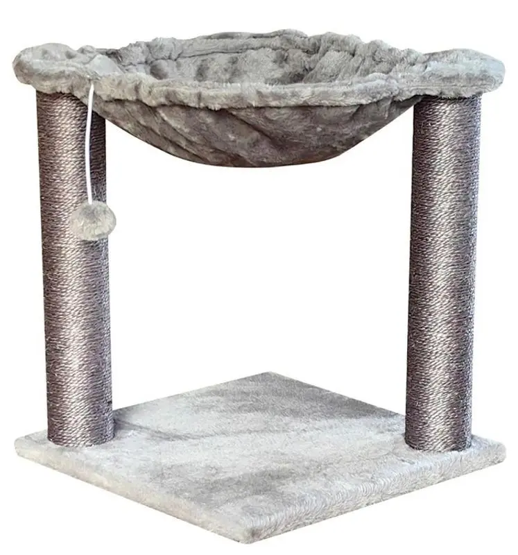Stilren mindre klösmöbel helt i grå färg, med en jättemysig sovplats längst upp - som en egen hängmatta till din katt.