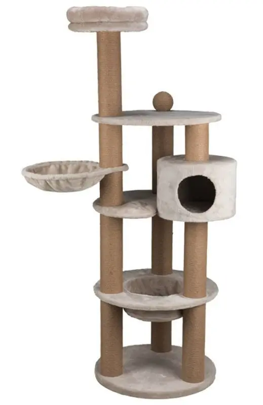 Nigella klösträd är ett snygg klätterställning med flera spännande lek- och sovplatser. Stoppad mjuk bädd längst upp, mysig korg-hängmatta och en hemlig grotta att busa i.