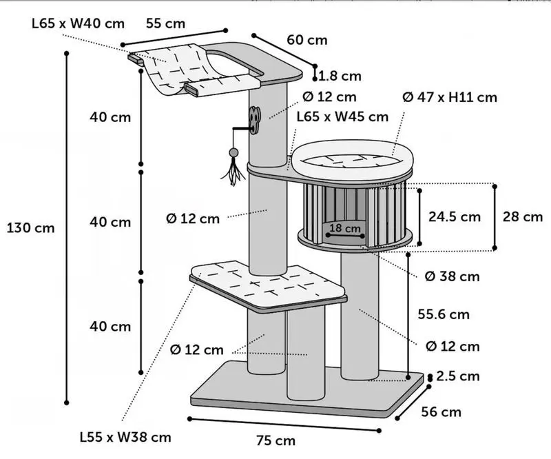 Raisa 2 klösmöbel är en superfin kattmöbel och inredningsdetalj i hemmet. Mörkbruna trädetaljer, vadderade sovplatser med ljusare brunt plyschtyg och klöspelarna är lindade med ett snyggt och hållbart juterep.