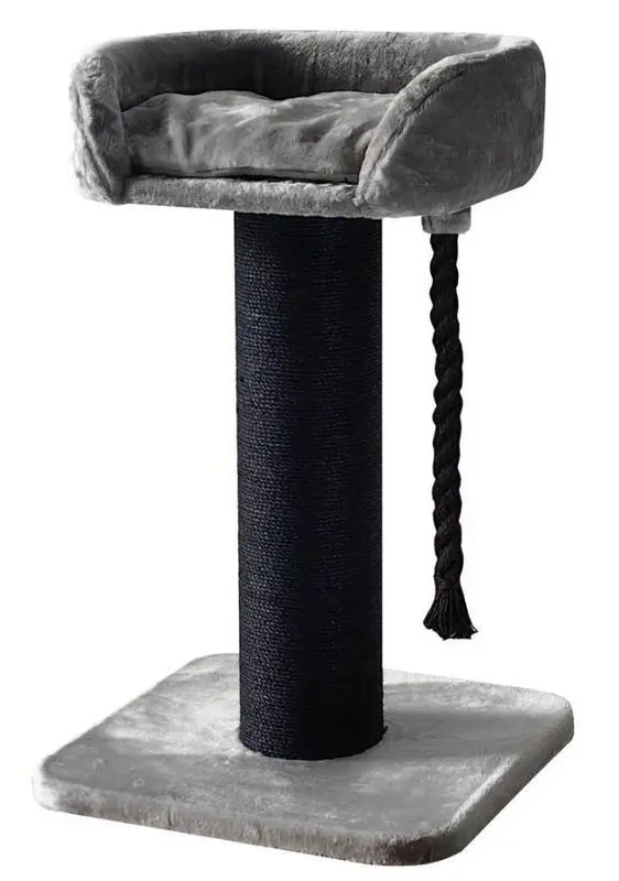 Simba har en klöspelare klädd i extra tjock svart sisalrep, och en mysig ljusgrå bädd med plyschklädsel. Bädden har en vadderad kant och en vadderad kudde som sitter fast med kardborre. Fastsatt under bädden hänger ett tjockt rep som är roligt att leka med och klösa lite på.