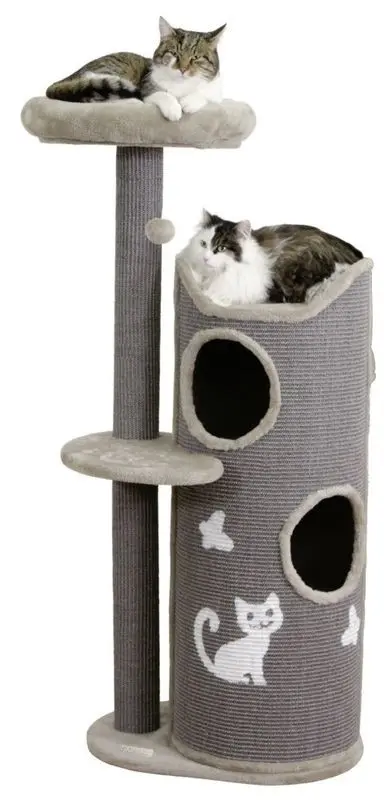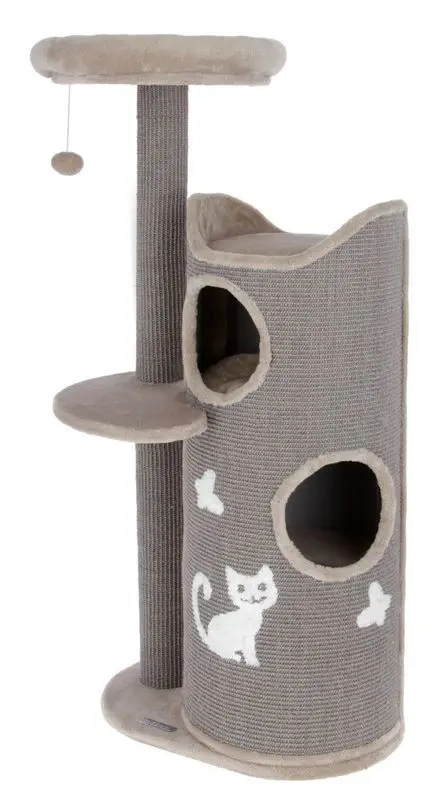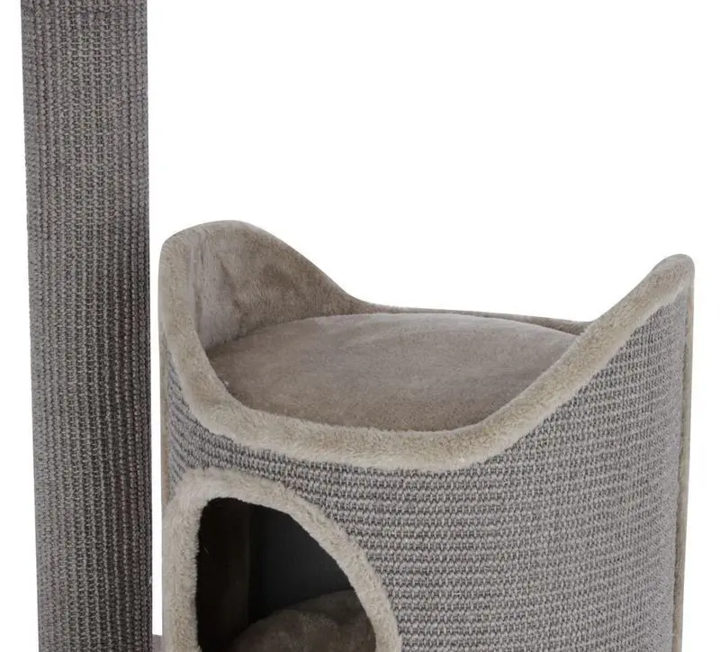 Fin klösmöbel till din katt som gör sig bra i hemmet. Klöspelare med gråbeige sisal och klöstunna med 3 våningar i samma färg. Den långa klöspelaren är extra bra om man har en katt som gillar att sträcka ut sig och stretcha ordentligt när den klöser.