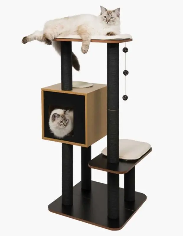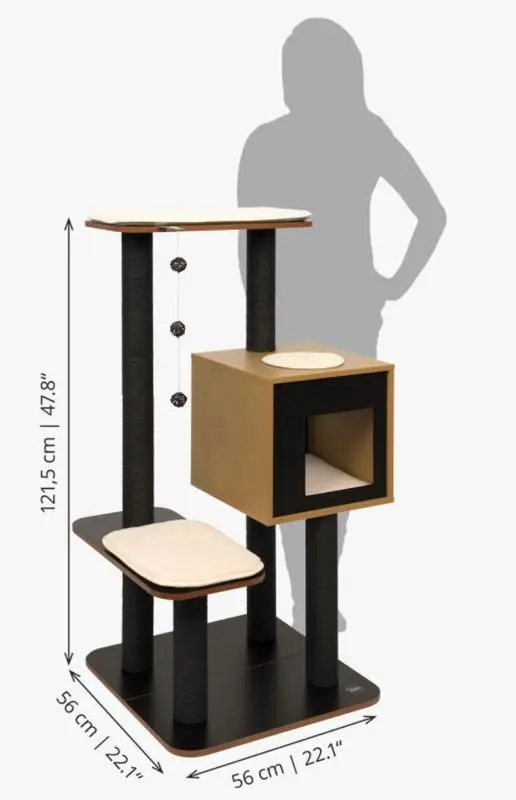 Vesper High Base Black är en klösmöbel med modern design som passar fint i hemmet. Klösträdet har tre nivåer för spaning ut över reviret och en mysig kub där din kisse kan ta sin catnap. Kuben är designad med 2 ingångar så att din katt inte ska känna sig trängd.