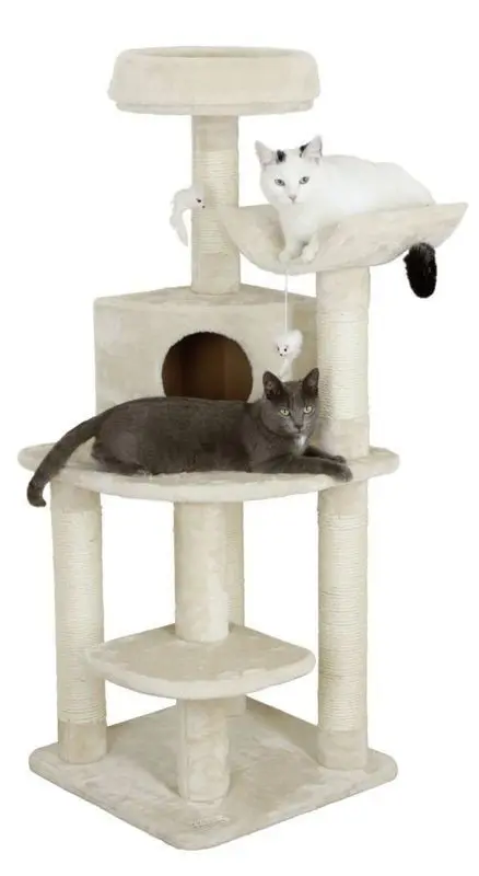 Zirkonia klösträd har flera liggytor och spanarplatser till din katt, även en mysig grotta att gömma sig i och flera sisalpelare att vässa klorna på.