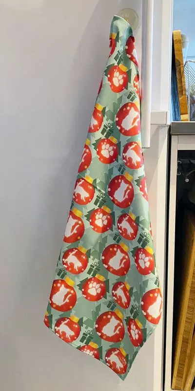 En fin och julig kökshandduk, med ett av våra egna mönster. Den här färgglada kökshandduken pryder sin plats i köket i juletider och hjälper till att sprida julstämning. Matcha gärna med disktrasan i samma motiv.