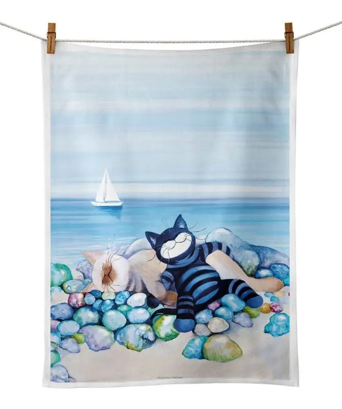 Fantastiskt fina kökshandduken med Pias nya motiv "Strandsatta" från hennes eget varumärke Originella Original. Kökshandduken är tillverkad i 100% linne.