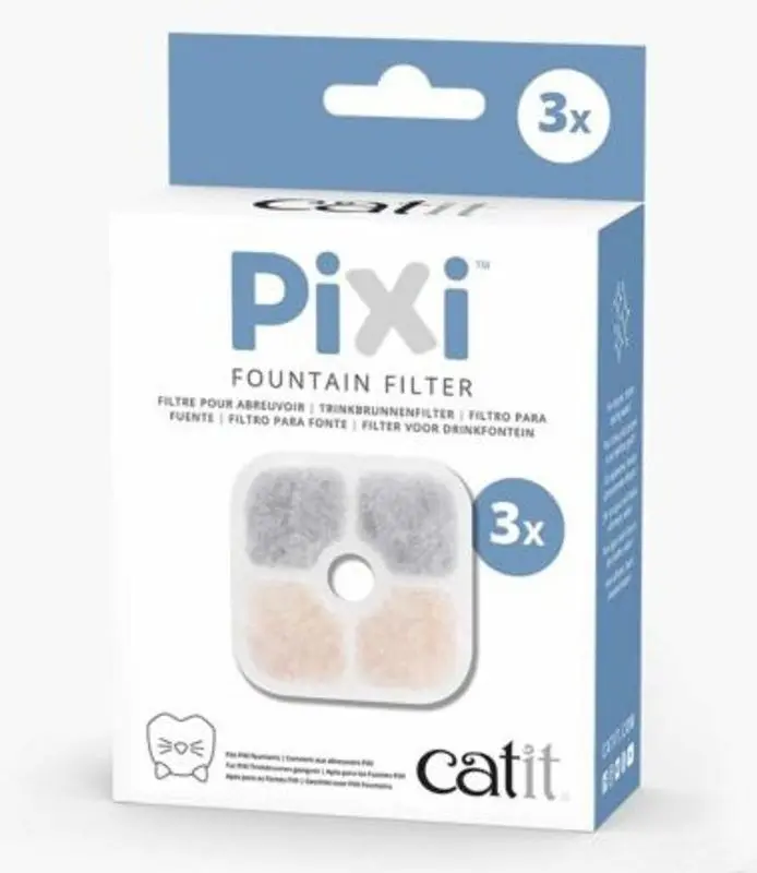 Filtren passar till alla Catit PIXI-fontäner (även till PIXI SMART), CatIt rekommenderar att man byter filter en gång i månaden - men det kan behövas bytas oftare om fontänen drar in mycket partiklar i filtrar.
