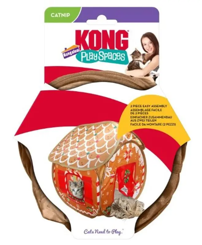 Roligt pop-up lektält till din katt, ett egen "pepparkakshus" med en öppning framtill och ett tittut-hål i fönstret på sidan. Kong Cat Play Spaces är perfekt som krypin för den katt som vill gömma sig lite, eller kanske lägga sig i bakhåll för husse och matte? Fungerar lika fint både för en tupplur och bus!