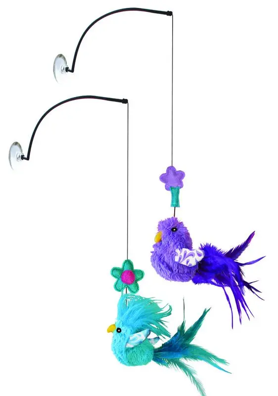 Rolig prasslande leksak med fjädrar och kattmynta som kan hålla den lekfulla katten sysselsatt långa stunder åt gången. Fäst helt enkelt leksaken med sugproppen på en slät yta och se din mysiga, kurrande lilla fyrfota älskling förvandlas till en livsfarlig fågeljägare.