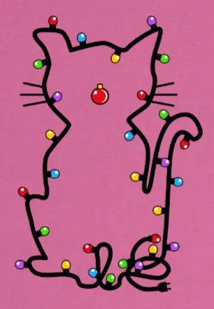 När ljusslingan trasslar ihop sig på det bästa sättet, eller hur! En fin och julig rosa t-shirt med kattmotiv, passar utmärkt både hemma och på kontoret.