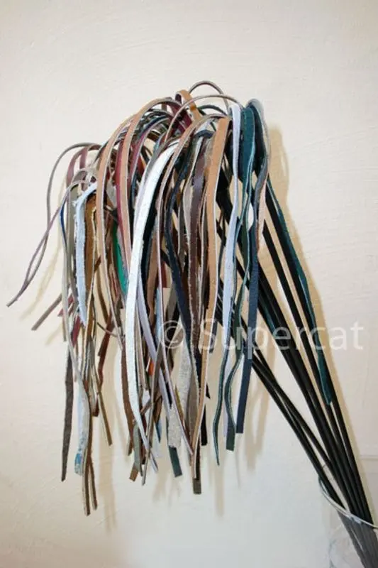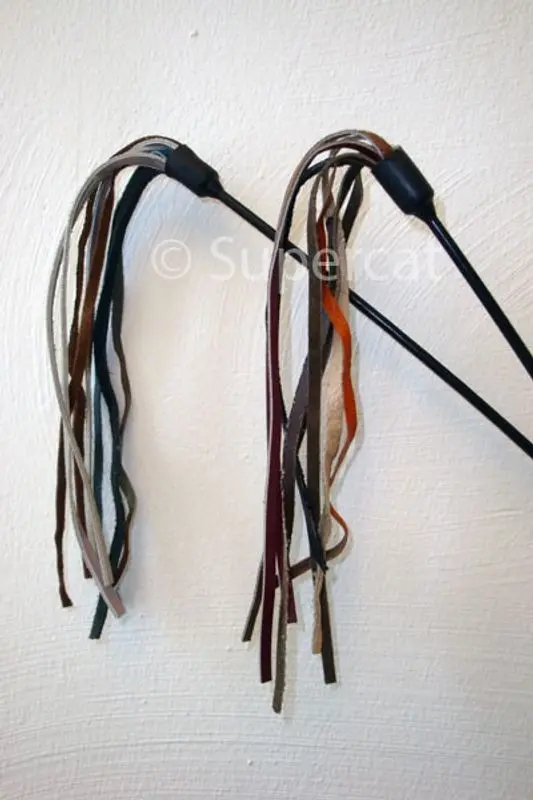 Vippa med remmar i läder, väldigt hållbar jämfört med fjädervippor och vippor med boa.