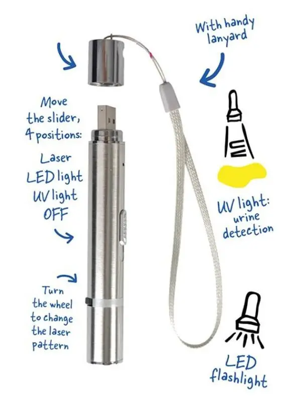 Pekaren har även en funktion med UV-ljus - vilket kan användas om du misstänker att din katt kissat på fel ställe och söker efter fläcken.