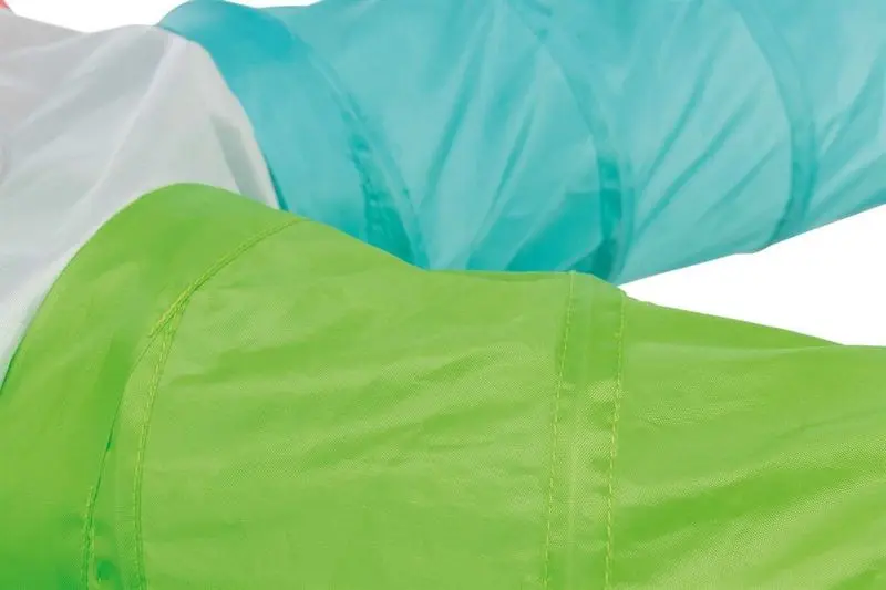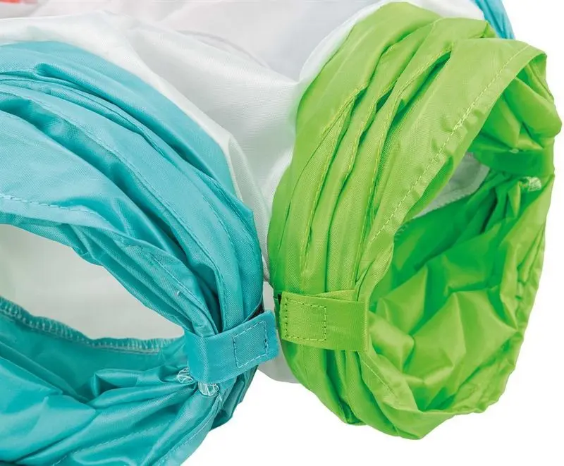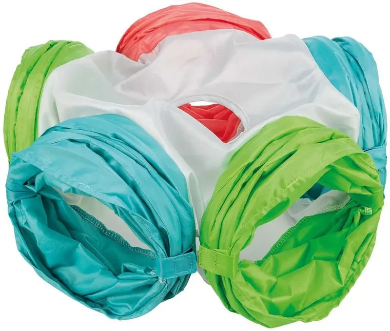 Material: Nylonimitation (polyester) med sprialfjäder som håller tunneln uppe.