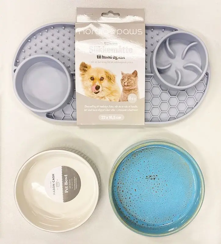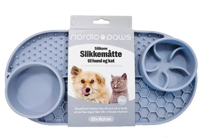 En foderplatta och aktiveringsmatskål som passar både hundar och katter. Denna matta är lite större än andra foderplattor för katter - se produktbild nr 3 där den är fotad brevid 2 "normalstora" kattmatskålar. Foderplattan och har 4 olika stationer med olika strukturer.