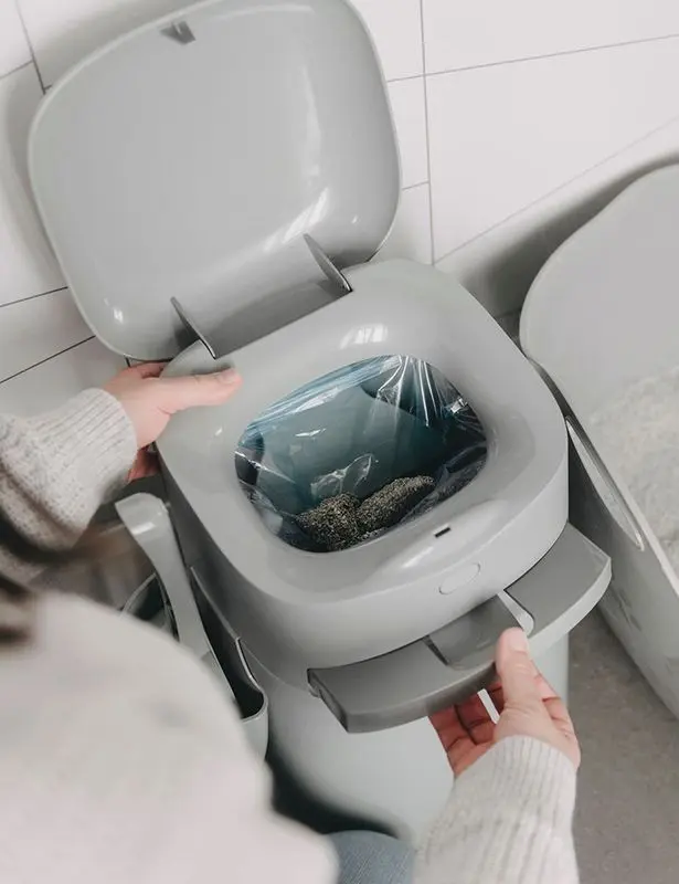 Easy Roll-hinken har en bred öppning upptill, vilket gör det smidigt att tömma kattspaden utan att spilla. Du öppnar locket, tömmer kattspaden i hinken, och drar i handtaget - som släpper ner klumparna i botten av påsen och sedan sluter tätt så att ingen lukt kommer ut. Påsen är dessutom tillverkad av flerlagersfilm som har en odörlåsande barriärteknologi. Hinken ger alltså inte i från sig någon lukt, trots att den är full med kattlåderens.