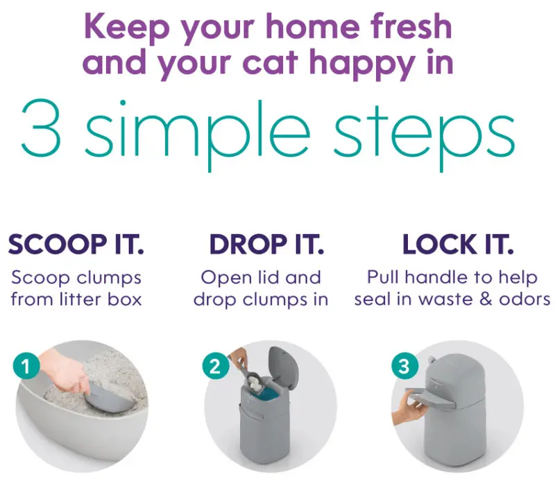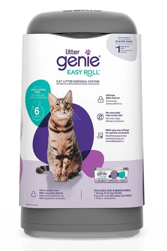 Placera din Litter Genie® Easy Roll sophink bredvid kattlådan, så kan du enkelt rensa lådan och släppa den använda kattsanden rakt ner i hinken - i stället för att hålla på och pillra med individuella bajspåsar. Både kattsandsbehållaren och påsen är utformade för att hålla lukten borta, och kan rymma upp till 8 dagar av använd kattsand, räknat på ett hushåll med en katt.