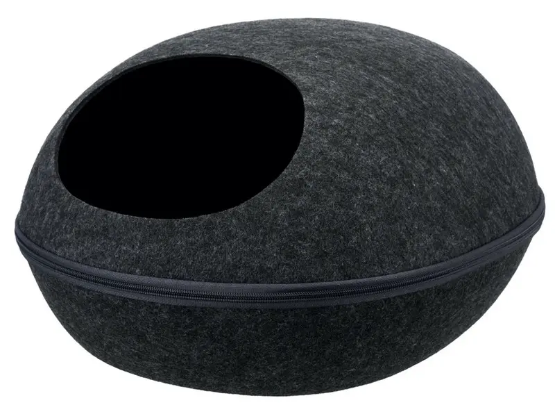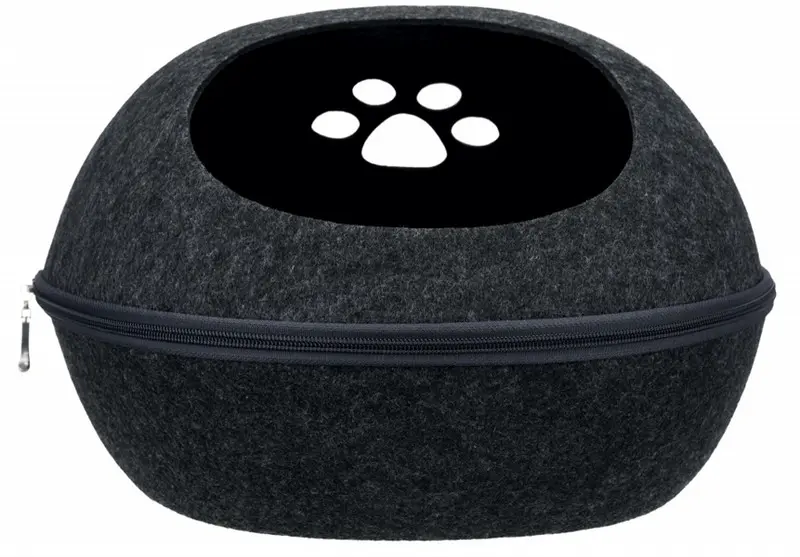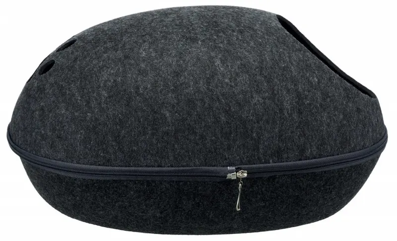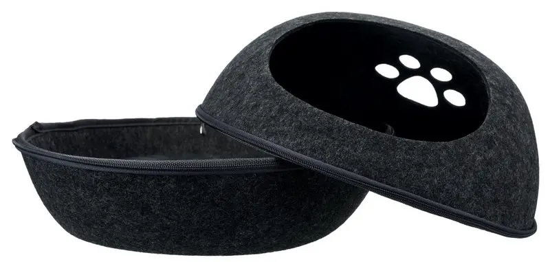 Supermysigt kryp-in för din katt att spana eller ta sina tupplurer i. Liva Igloo är tillverkad i stabilt filtmaterial som håller formen, samt verkar isolerande och är smutsavvisande. Det ingår en mysig kudde inuti kattbädden och på baksidan finns utkikshål gjorda i form av ett tassavtryck. Igloon går att öppna helt genom dragkedjan. Kommer i snygg mörkgrå färg som smälter bra in i hemmet.