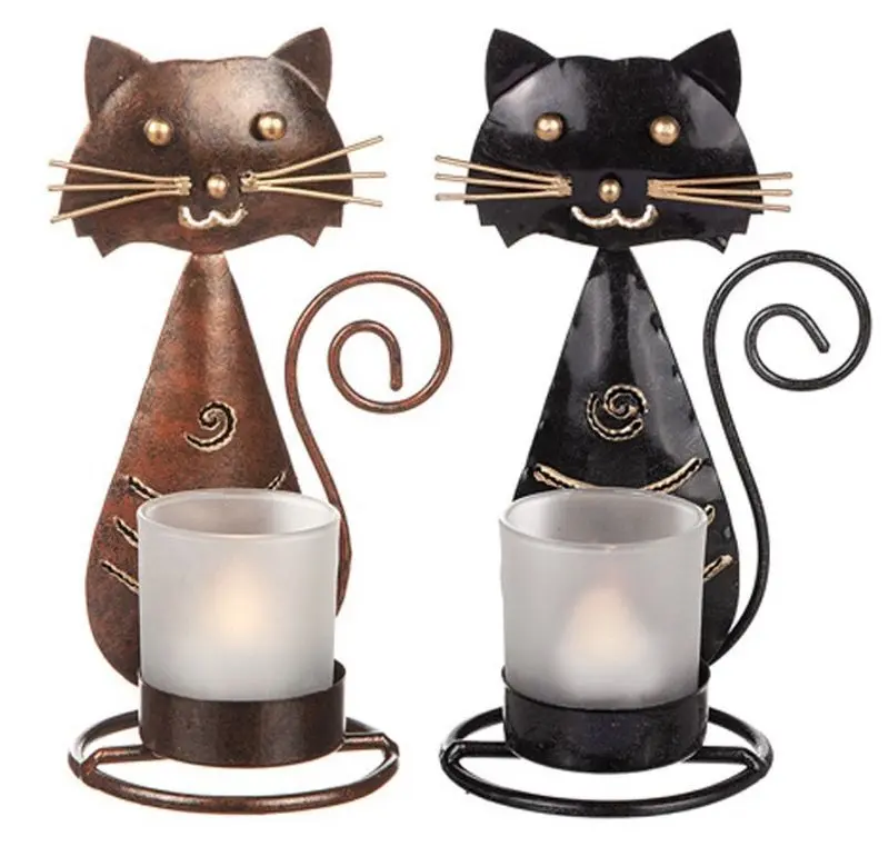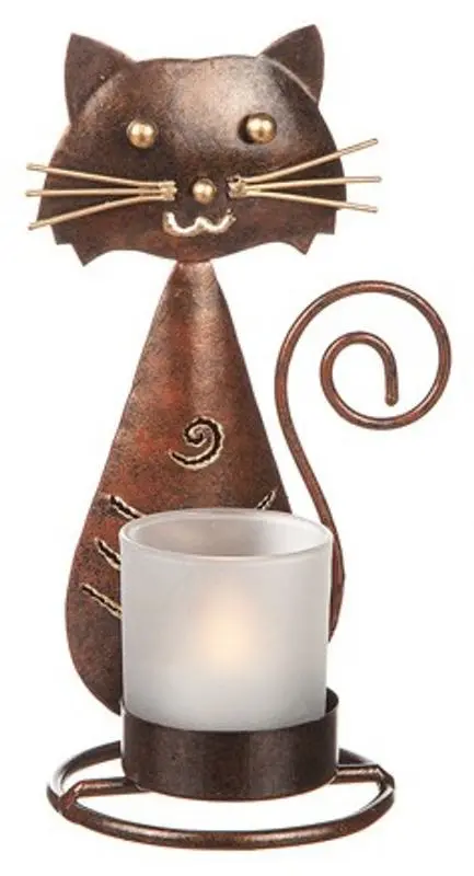 En riktigt fin ljuslykta i hamrad plåt, 20 cm hög med kattmotiv.