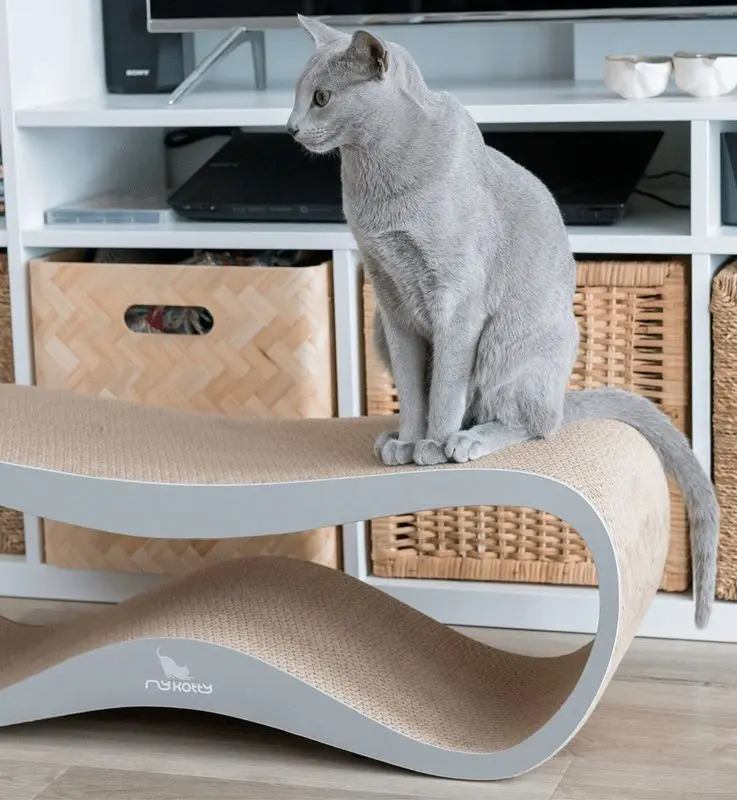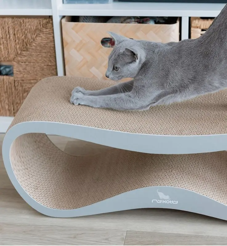 Lui klösmöbel i ny ljusgrå färg är handgjord i Polen med lokal miljövänlig wellpapp och ett certifierat lim, säkert för både djur och människor. Eftersom produkten är handgjord kan dimensionerna variera något.