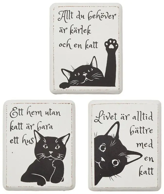 3-pack med söta kattiga magneter.
