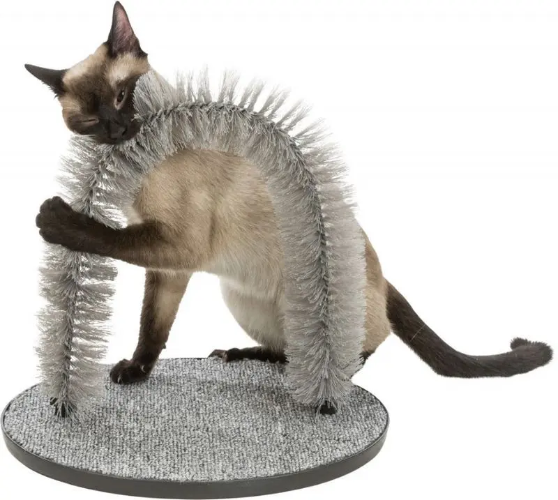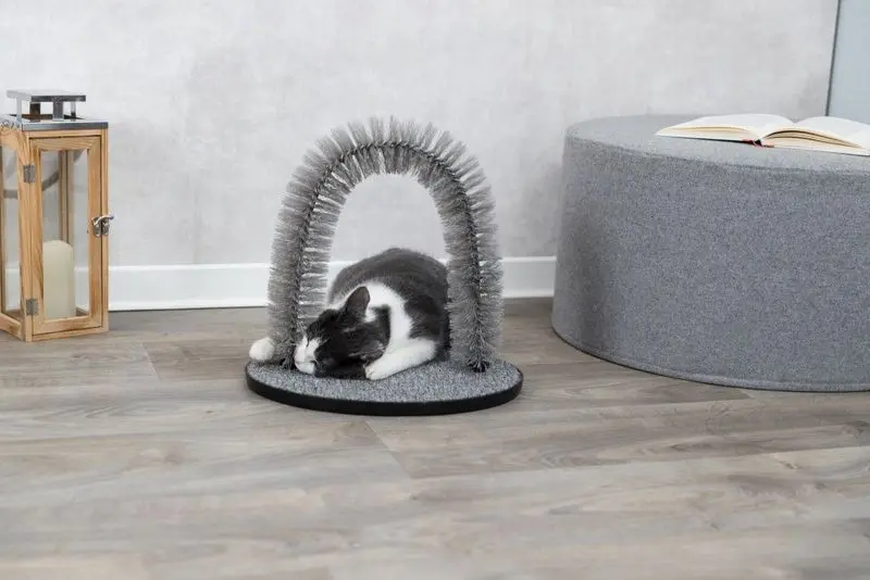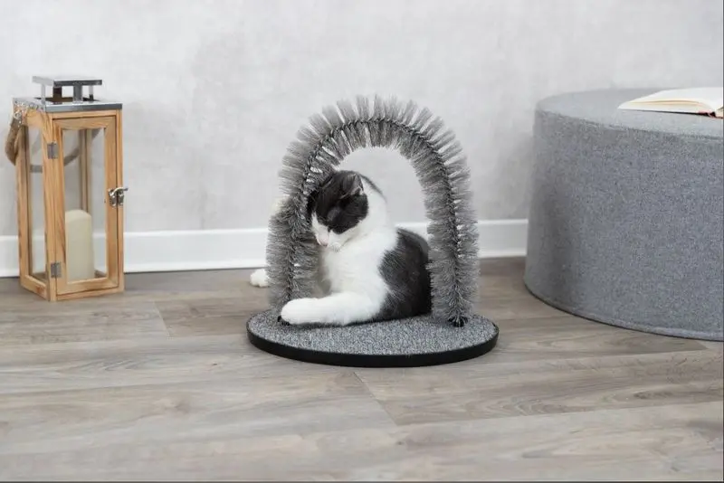 En fiffig kattprodukt där din katt själv kan stryka sig mot bågen och gnugga sig mot borsten. Pälsvårdsbågen borstar din katts päls och kan även vara skön att tugga på litegrann (se fotomodellen på produktbild 3).