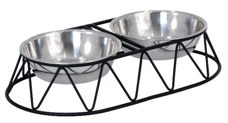 Matbar Menja i modern design; två något upphöjda kattmatskålar som kan vara bekväma för lite äldre katter som blivit stelare med åren och som kan ha problem att böja sig neråt.
