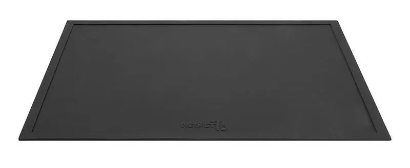 Snyggt matskålsunderlägg gjort av slitstarkt och livsmedelssäkrat silikon från märket District 70. Passar fint in i det moderna hemmet och håller golvet rent.