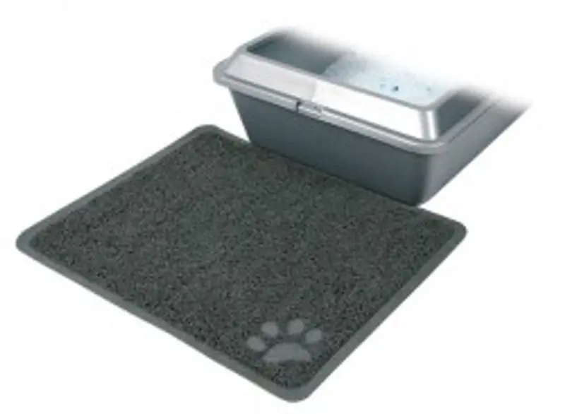 En grå mjuk matta att lägga utanför kattlådan som förhindrar spridning av kattsand och kattströ.