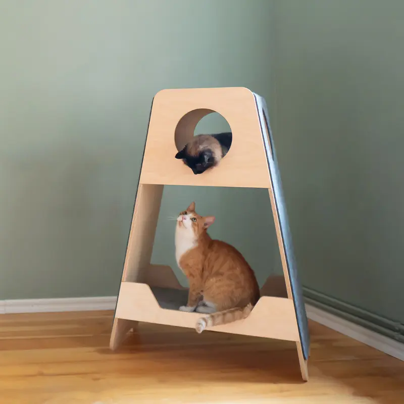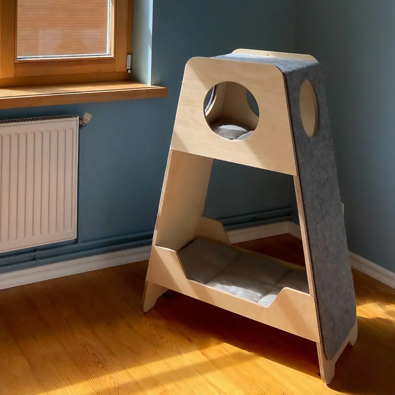 Tack vare flera olika nivåer passar Fuji Tower både som spanar-tron men också som ett mysigt krypin när din katt vill ta en tupplur. På kattmöbelns sidor sitter designfilt som går att klösa på, istället för att din katt ska klösa på soffan ;)