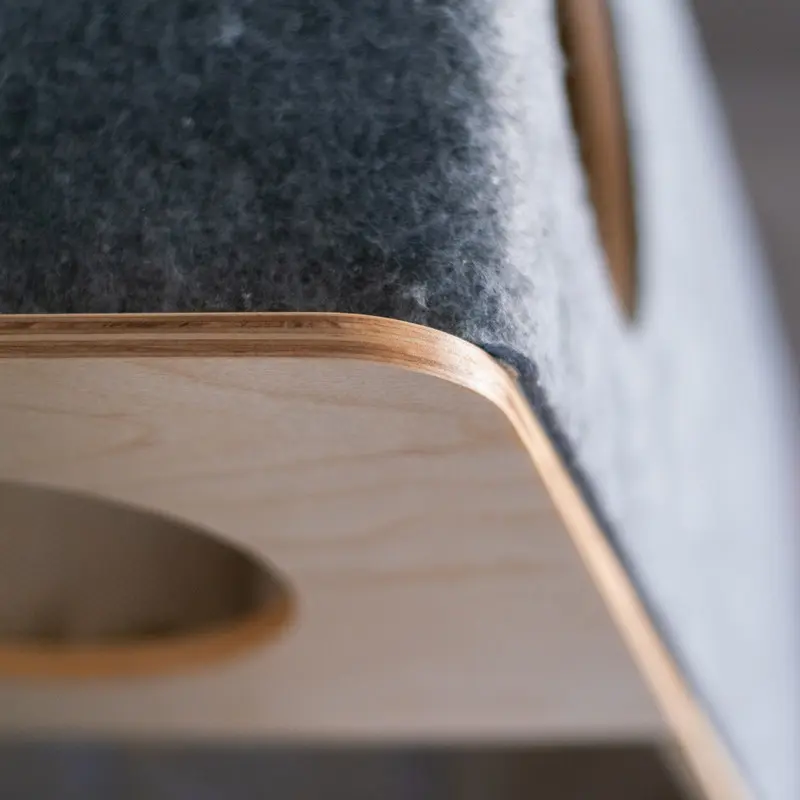 Material: Hållbar nordisk björkplywood, samt designfilt på sidorna