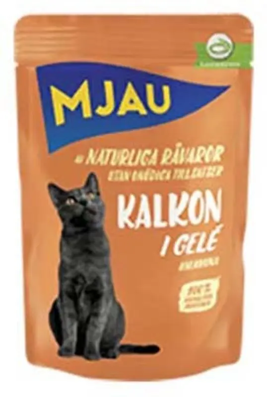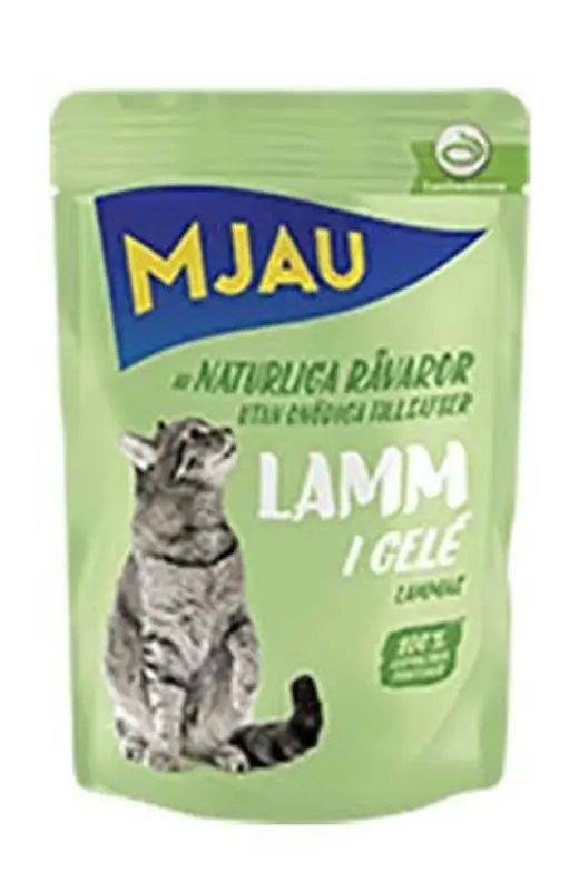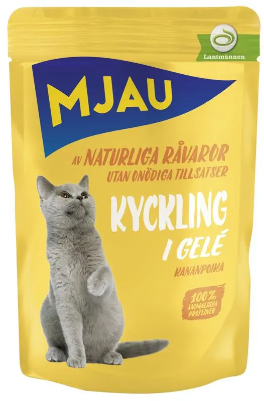 Innehåller 100% animaliskt protein och har inget tillsatt socker eller spannmål. Mjau tillverkas i Vårgårda, beläget i den västra delen av Sverige och endast svenska råvaror av högsta kvalitet, utan hormoner, antibiotika och syntetiska tillsatser används vid tillagningen.