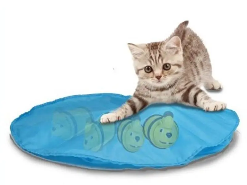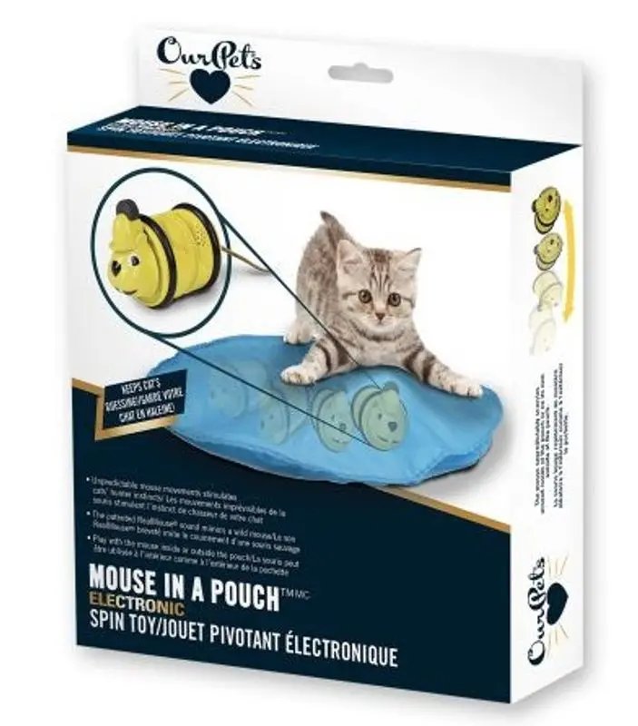 Mouse in a pouch är en kul aktiveringsleksak som kan användas på 2 olika sätt. Det blå tyget har en busig liten mus inuti, mösset springer omkring åt olika håll och ibland stannar det till - perfekt för kisse att attackera!