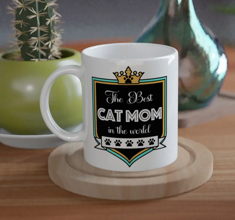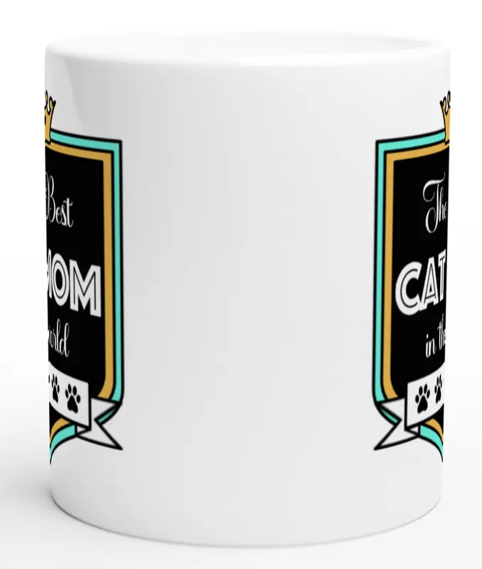 Muggen har samma text på båda sidorna, för att budskapet ska synas ordentligt - texten lyder "The Best CAT MOM in the world".