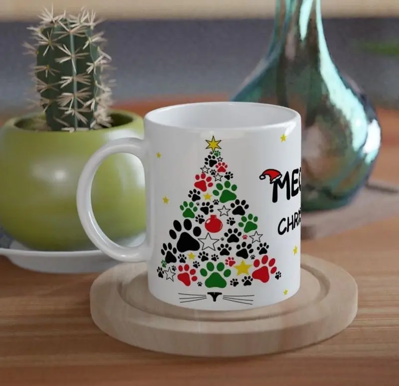 Fira in julen med den här juliga muggen, med världens finaste julgran! Perfekt mugg för kaffestunden på jobbet, eller som tidig julgåva till dina kattälskande vänner.