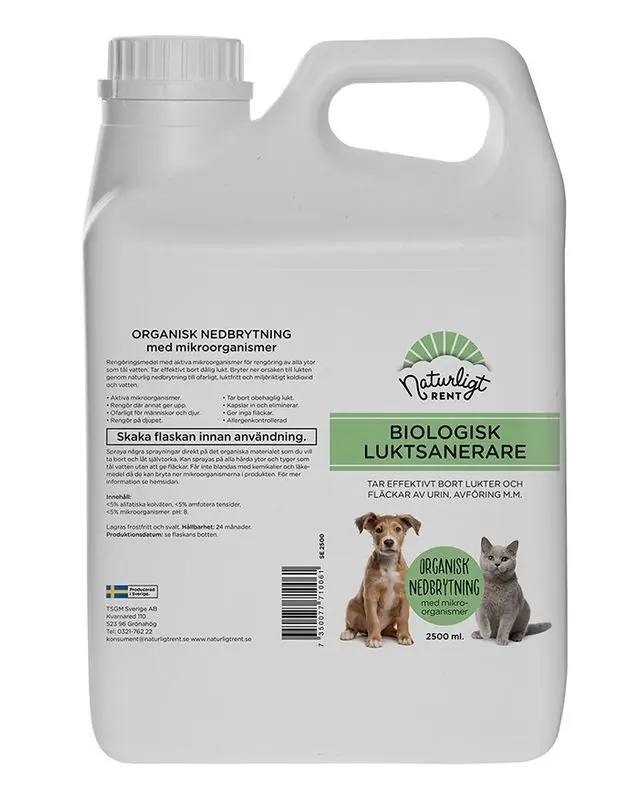 Naturligt Rent Biologisk Luktsanerare med mikroorganismer hittar och bryter ner olika organiska material såsom urin, äggvita, kolhydrater, proteiner, cellulosa och fettämnen.