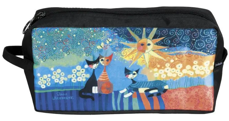 Mjuk necessär i en riktigt bra storlek, med det fina kattmotivet "Dolce Vita" från konstnären Rosina Wachtmeister. Motiv på båda sidorna av necessären, svart undersida, insida och dragkedja.