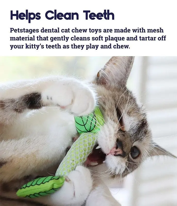 FRÄMJAR RENGÖRING AV TÄNDER: Fresh Breath Mint Stick är en rolig mintfylld tandleksak som din katt kommer att gilla! Nätmaterial i nät hjälper till att ta bort mjuk tandsten och plack när din katt tuggar och biter och stöder deras tandhygien.