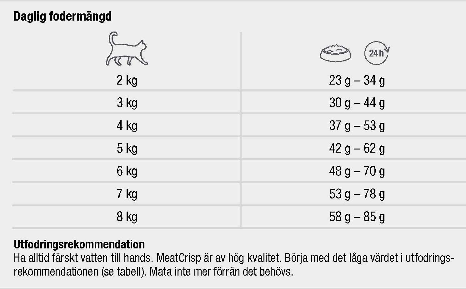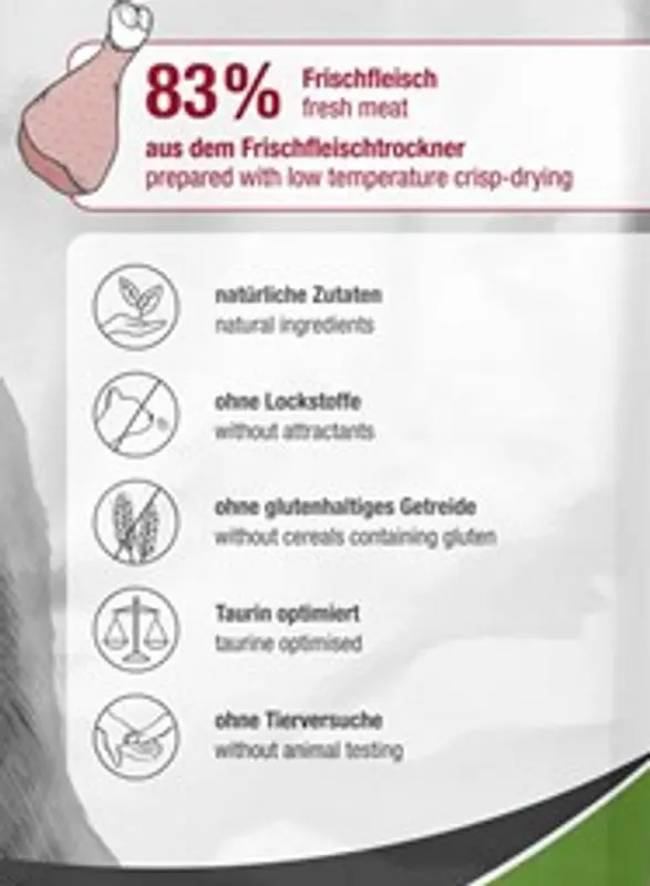 Tillagningen skiljer sig från andra torrfoder - i stället för köttmjöl används endast färskt kött av bra kvalitét. Köttet torkas långsamt på låg temperatur och med cirkulerande luft, på så sätt bevaras köttets naturliga näringsämnen och aminosyror. MeatCrisp är därför mer naturtroget för katten än de flesta kattfoder, det är bra för din katts hälsa och även väldigt väldigt smakrikt!