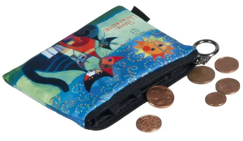 Liten portmonnä i tyg och det superfina kattmotivet Momenti, från konstnären Rosina Wachtmeister. Perfekt storlek att ha i handväskan för småpengarna, hårsnoddarna, visitkorten eller vad man kan tänkas behöva stoppa i den!