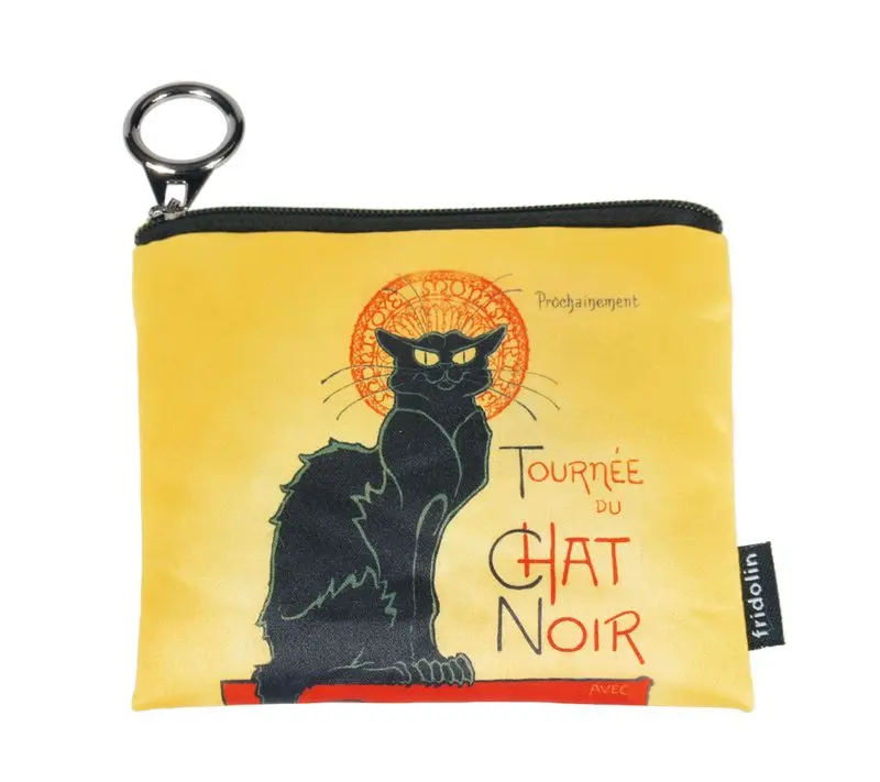 Liten portmonnä i tyg och det fina motivet Chat Noir. Dragkedja för att stänga till den.