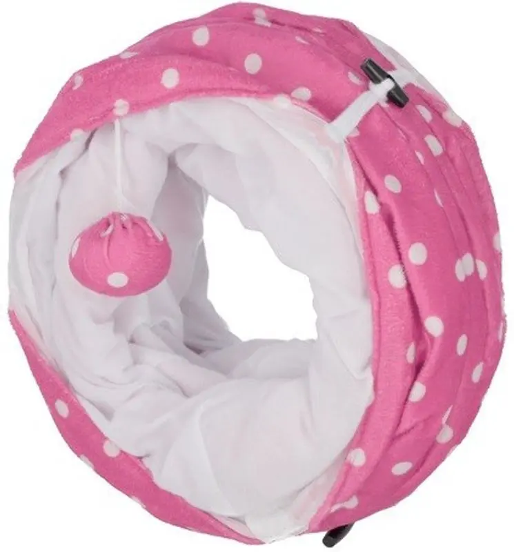 Lektunneln är lätt att fälla ihop och plocka undan när den inte används. Tillverkad i nylon och klädd i mjuk rosa plysch.