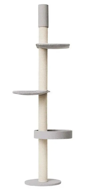 Många katter har behov av att klättra högt upp för att sitta och spana, eller sova på hög höjd och detta tillgodoser detta klösträd. Alla hyllor går att variera i vridningen så att trädet t ex kan placeras i ett hörn.