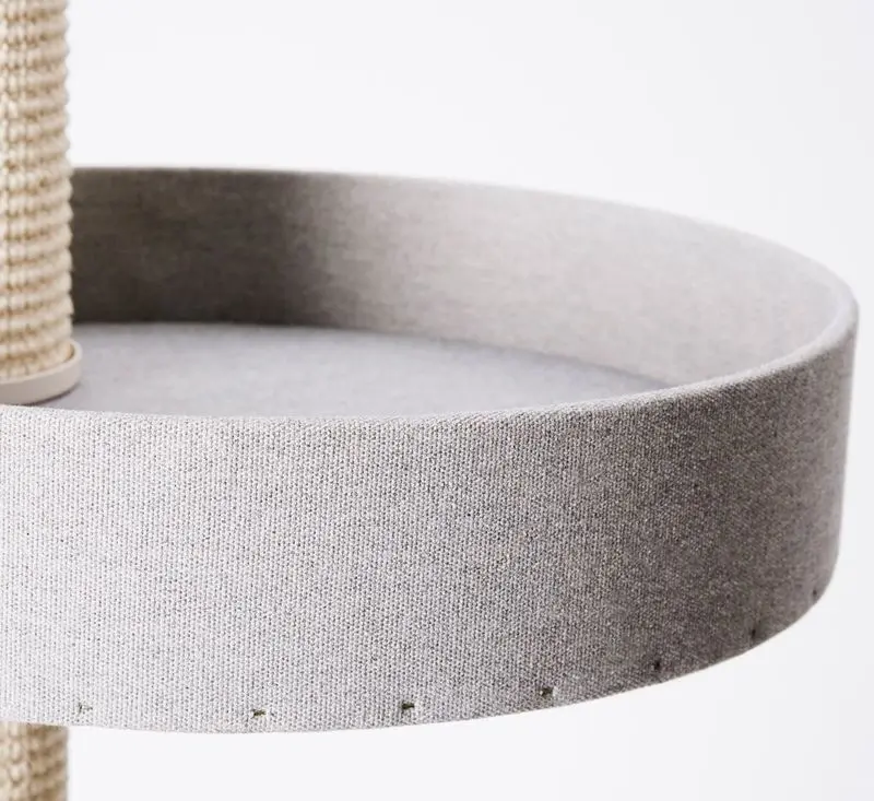 Klösmöbel av modellen Q55 är ett av de mer efterfrågade träden, här får man 2 mysiga hängmattor och en hylla med kant - på en stadig bottenplatta. Den nya varianten med högkvalitativt ljusgrått möbeltyg från italien gör det där lilla extra för att klösträdet ska passa in med hemmets inredning.