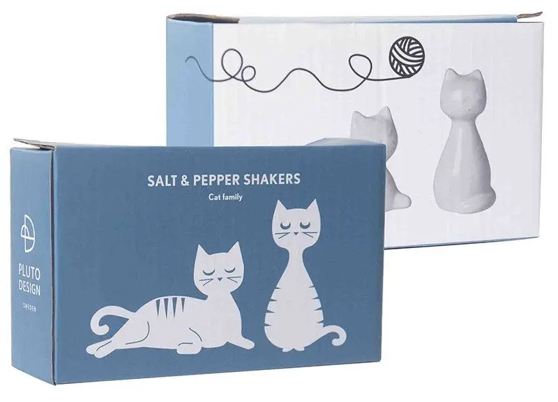 Superfina nätta salt- och pepparbehållare i form av 2 vita katter, pryder sin plats fint på köksbordet eller på köksbänken.