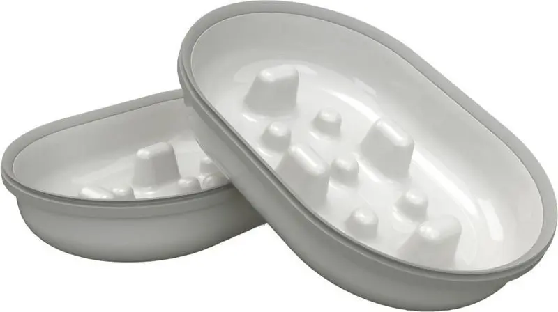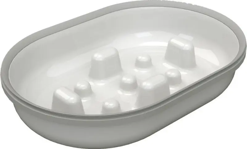 Kattmatskål med smarta förhöjningar i botten som förhindrar att din katt slänger i sig maten för snabbt. När katten äter långsammare kommer den att känna mättnad på ett bättre sätt, vilket ger en bättre matsmältning och kan bidra till mindre kräkningar pga hetsätning.