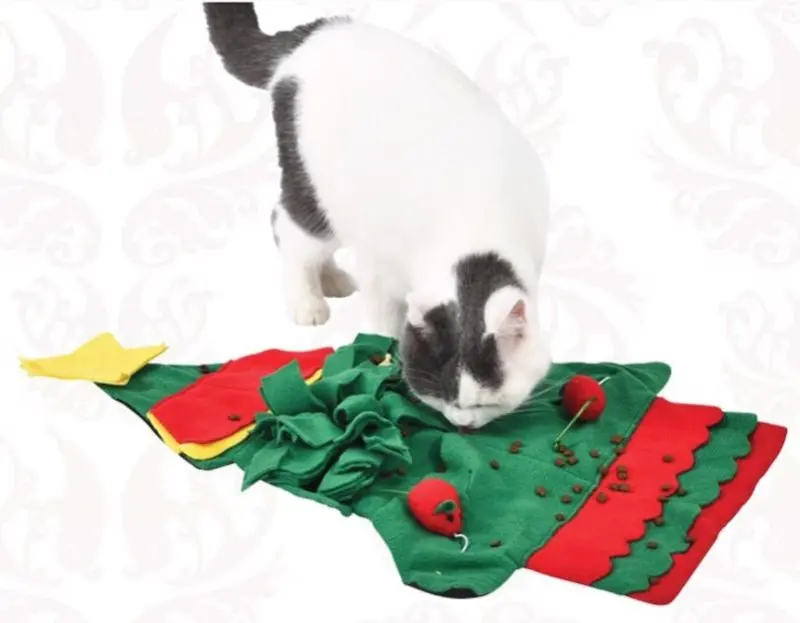 Sniffing blanket med julmotiv - en populär aktiveringsleksak för katter och hundar. Filten har små veck och olika fack, där din katt får söka, nosa och pillra med tassarna för att få ut sina gobitar!