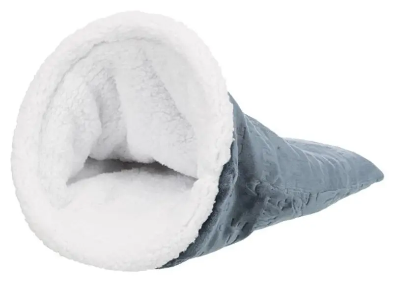 Mjuk och gosig sovpåse till din katt i trendig petrol-blå och vit färg. Passar extra bra för katter som tycker om att sova gömd under filtar och täcken, men katten kan även sova ovanpå den som en vanlig kattbädd.